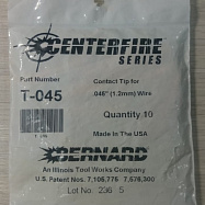 Контактные наконечники для горелок Bernard серий Q300-Q600 с системой Quick-Click (Centerfire). Совместимы с оригинальными держателями Miller Electric и Bernard. Изготовлены из термостойкой меди с точным калибром отверстия под диаметр проволоки.